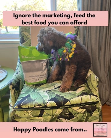 Choosing the right food for your puppy can feel overwhelming. Marketing is loud, opinions are strong, and trends change constantly. At Forever Summer Standard Poodles (FSP), we encourage families to focus on consistency, quality, and what works best for their dog. For many of our FSP puppies, that foundation is Life’s Abundance All Life Stages dog food. Why We Focus on All Life Stages Nutrition All life stages formulas are designed to meet the nutritional requirements of growth while remaining appropriate for adult maintenance. This allows for continuity—no constant food changes as your puppy grows. Life’s Abundance All Life Stages provides balanced protein, fat, vitamins, and minerals without relying on extreme formulations. For Standard Poodles, who benefit from steady growth and digestive consistency, this matters. Consistency Supports Digestion and Training Frequent food changes often lead to digestive upset, picky eating, and inconsistent energy levels. At FSP, we see puppies thrive when their diet remains stable. Sweetie can focus on learning, growing, and bonding—rather than adjusting to constant dietary changes. It takes at least 30 days for a food to complete it's nutrition cycle in your new puppy. Grains, Proteins, and Perspective Unless your veterinarian advises otherwise, grains and animal proteins play an important role in balanced canine nutrition. Life’s Abundance uses familiar protein sources and avoids unnecessary novelty ingredients that can complicate digestion. Picky Phases Are Normal Sweetie may go through phases where her enthusiasm for meals wanes. That’s normal. We recommend minimal, thoughtful toppers when needed—used sparingly to encourage eating without creating long-term pickiness. Work With Your Veterinarian At FSP, we always encourage families to partner with their veterinarian when making nutrition decisions. No single food is perfect for every dog, but consistency and quality go a long way. But also remember that your veterinarian probably isn't an expert in nutrition, they've had 1 class in vet school (typically sponsored by Purina or Hill's) as their only formal nutrition education. Feed the best food you can afford, feed it consistently, and evaluate your puppy—not the marketing.