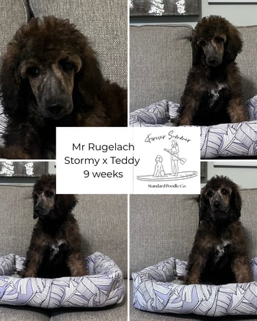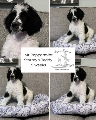 We have waited for this litter for years! Both poodles are CHIC health tested with exceptional results and have wonderful temperaments for service and therapy work. Expecting black and white parti, brown and white parti, black abstract, brown abstract and tricolor.